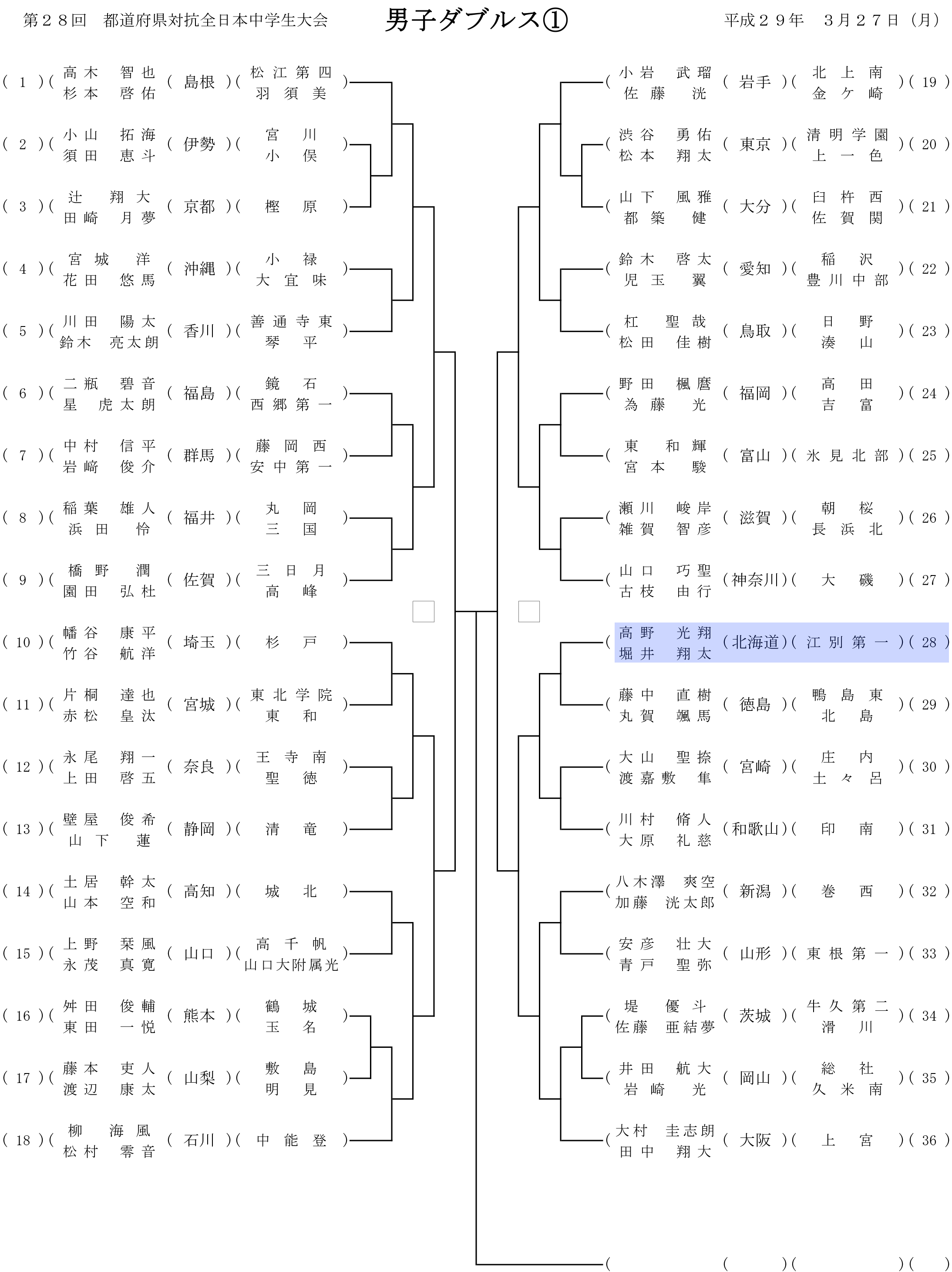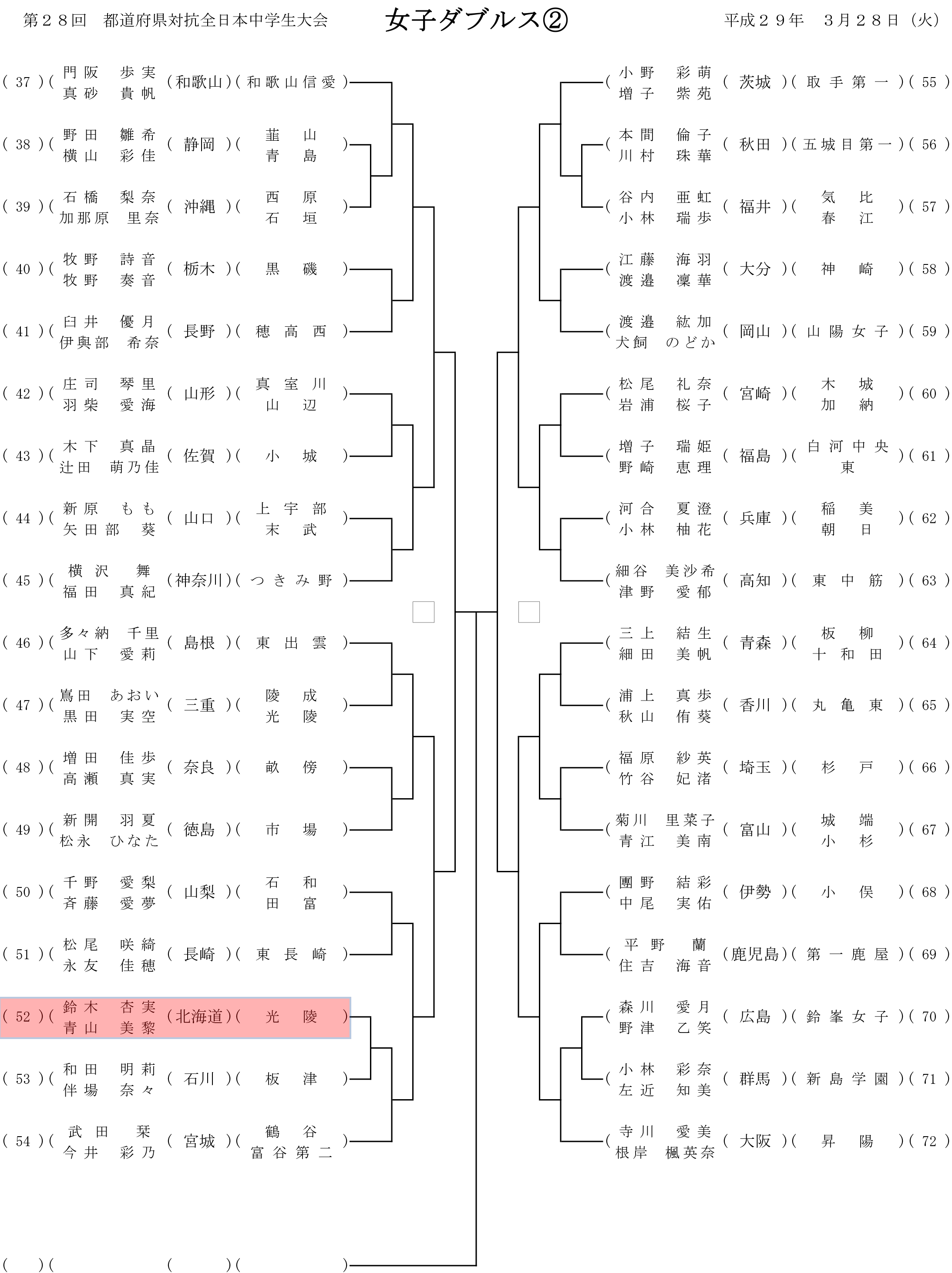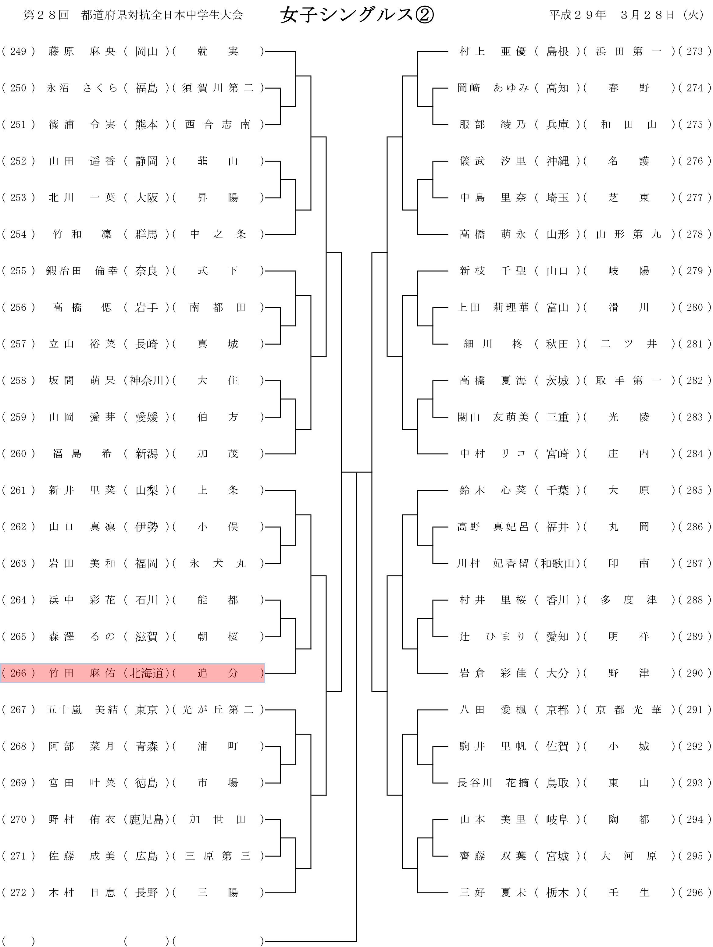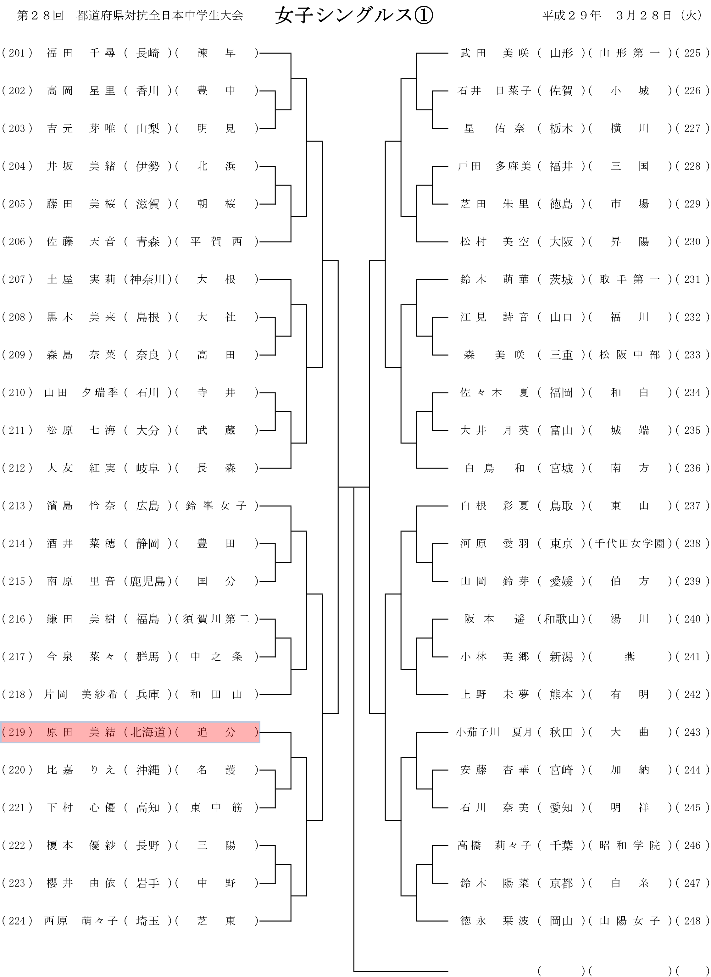 第28回都道府県対抗全日本中学生ソフトテニス大会 個人戦組み合わせ