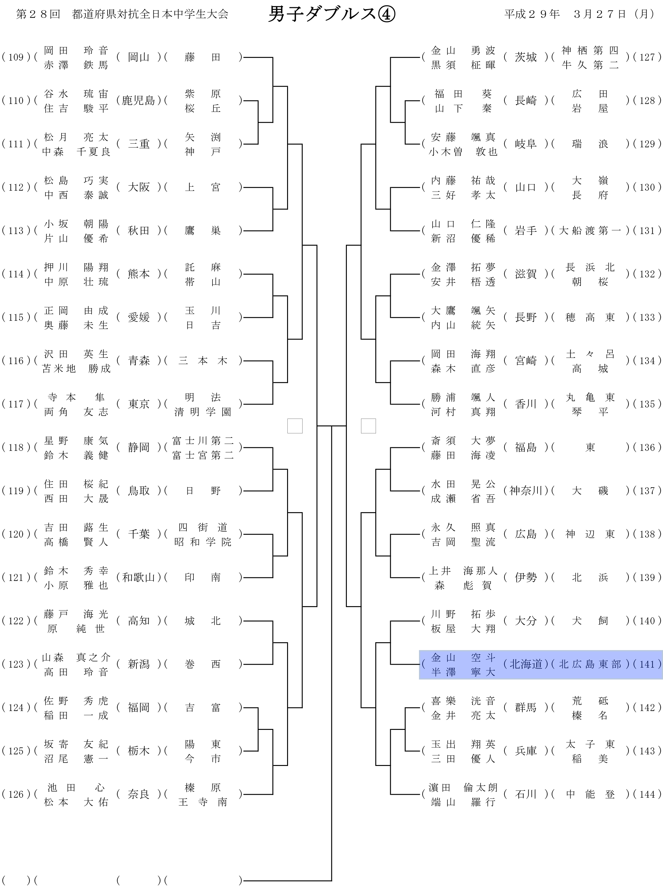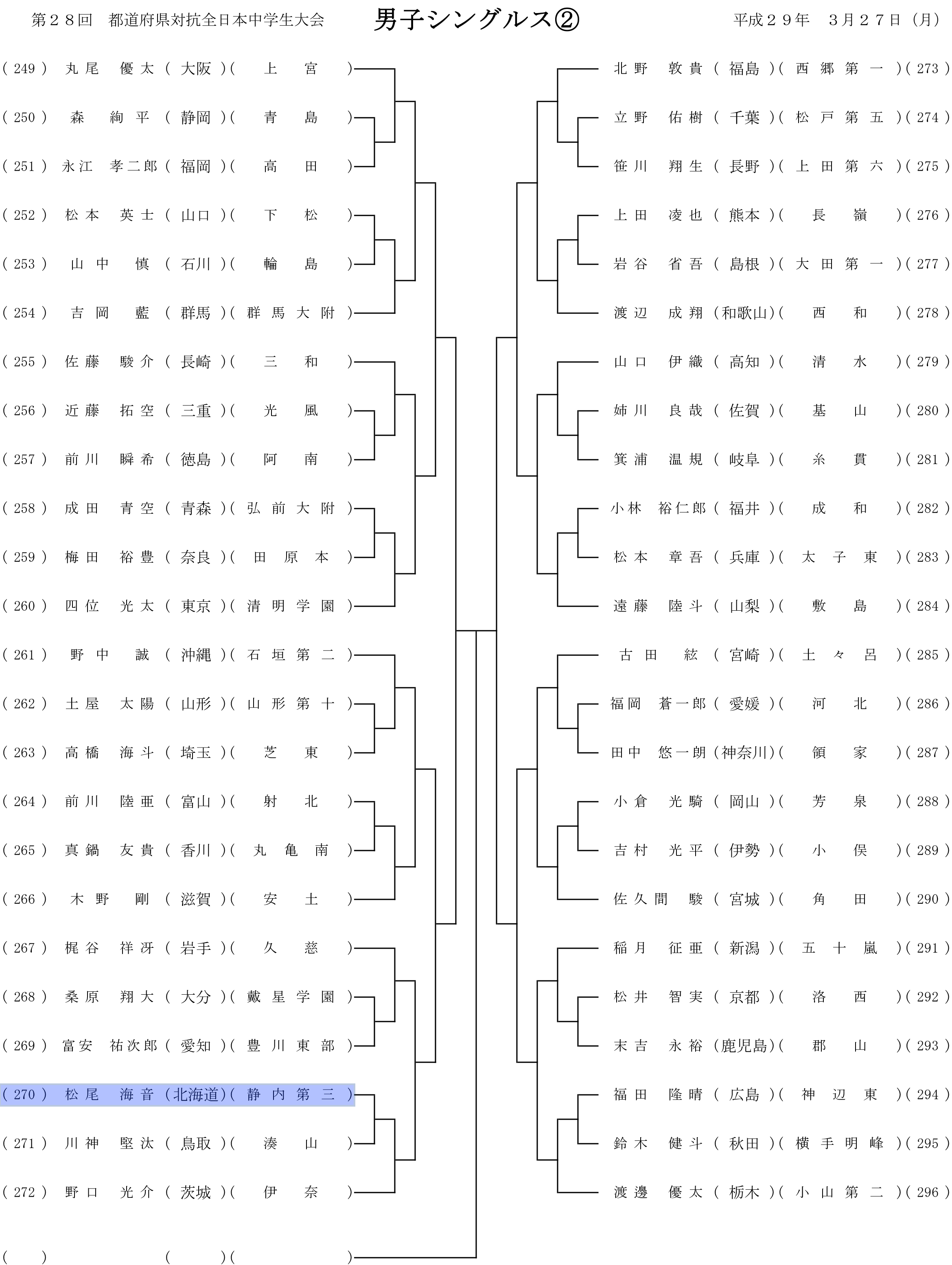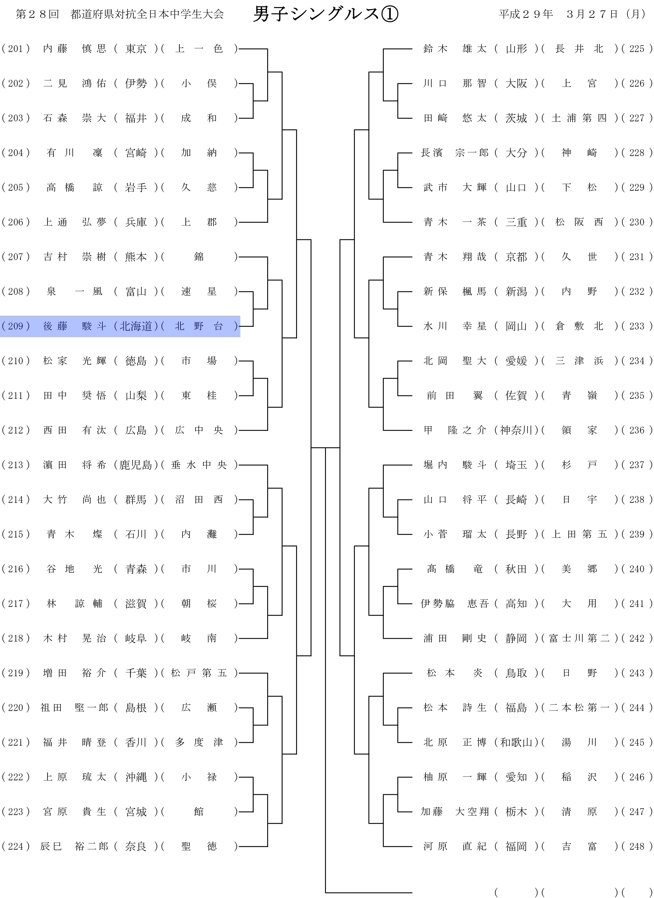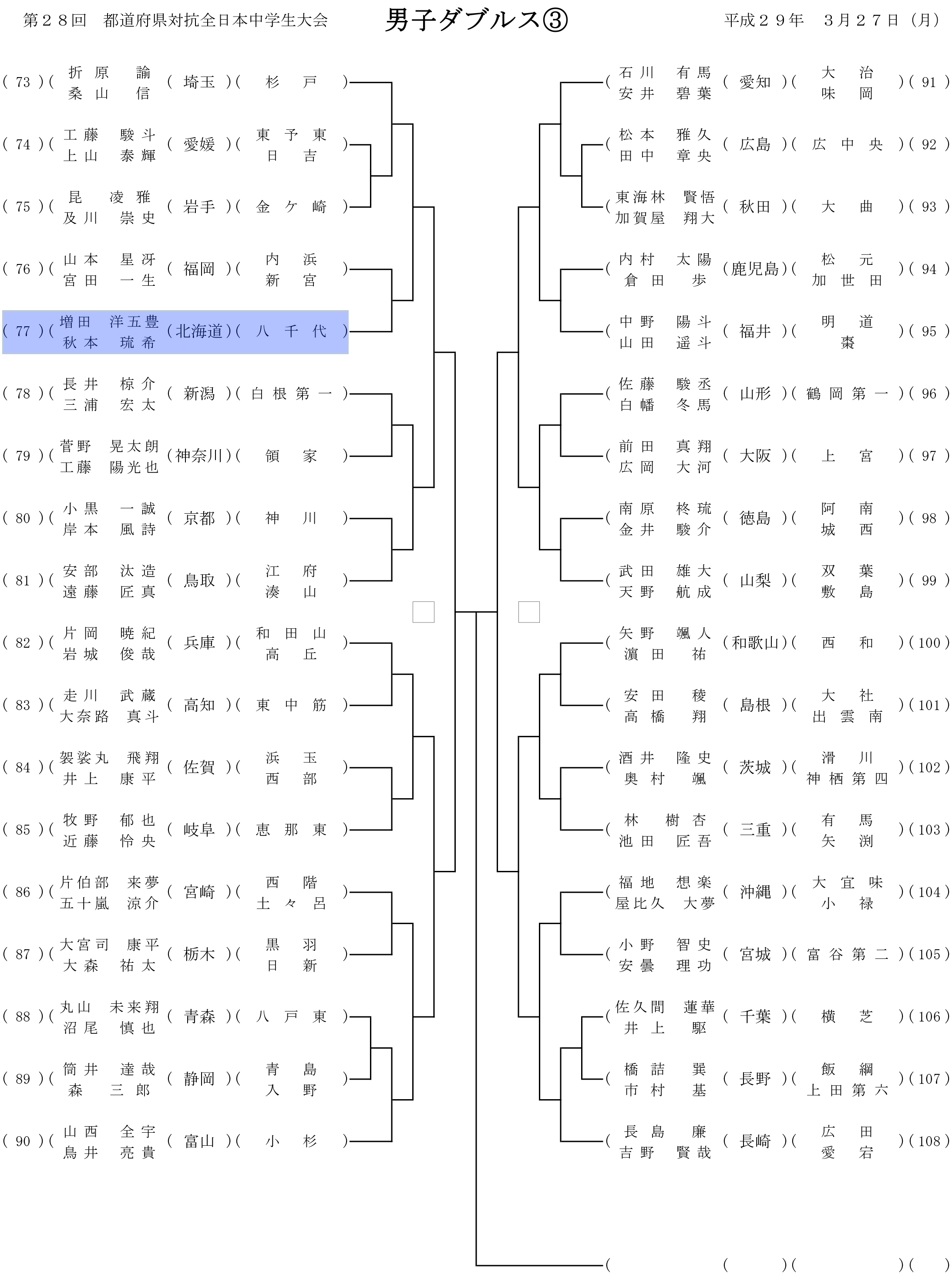 第28回都道府県対抗全日本中学生ソフトテニス大会 個人戦組み合わせ