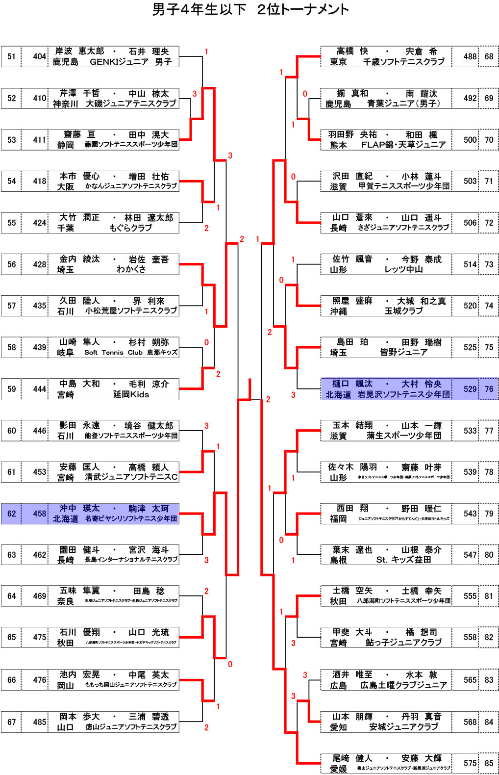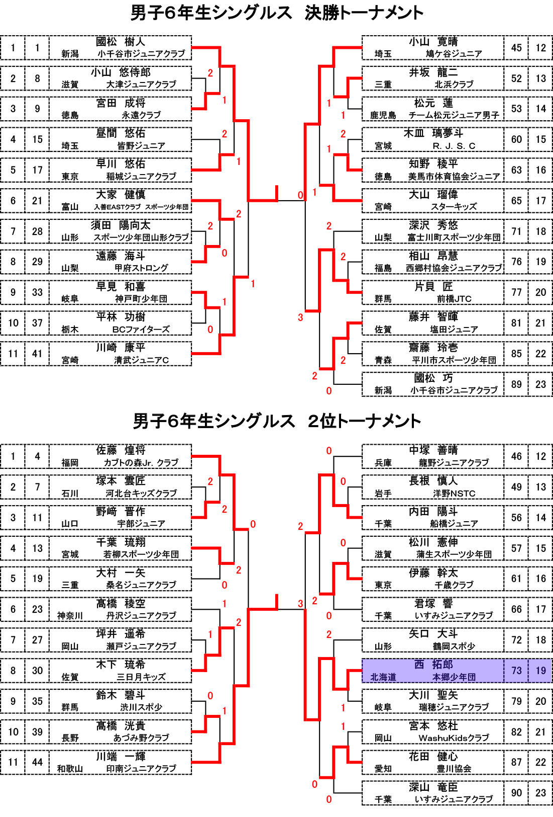 2019年4月2日 / 最終更新日時 : 2019年4月2日 管理人さん 大会の結果(小学生) 第18回 全国小学生大会 3月29日、30日、千葉県・白子町サニーコート他で行われた全小の結果です。 北海道選手にマーキングしてあります。 シングルス ダブルス 5年生男子 4年生以下男子 5年生女子 4年生以下女子 Facebook で共有 (新しいウィンドウで開きます) Facebook X で共有 (新しいウィンドウで開きます) X コメントを残す コメントをキャンセルメールアドレスが公開されることはありません。 ※ が付いている欄は必須項目ですコメント ※ 名前 ※ メール ※ サイト 上に表示された文字を入力してください。 新しいコメントをメールで通知 新しい投稿をメールで受け取る Δ