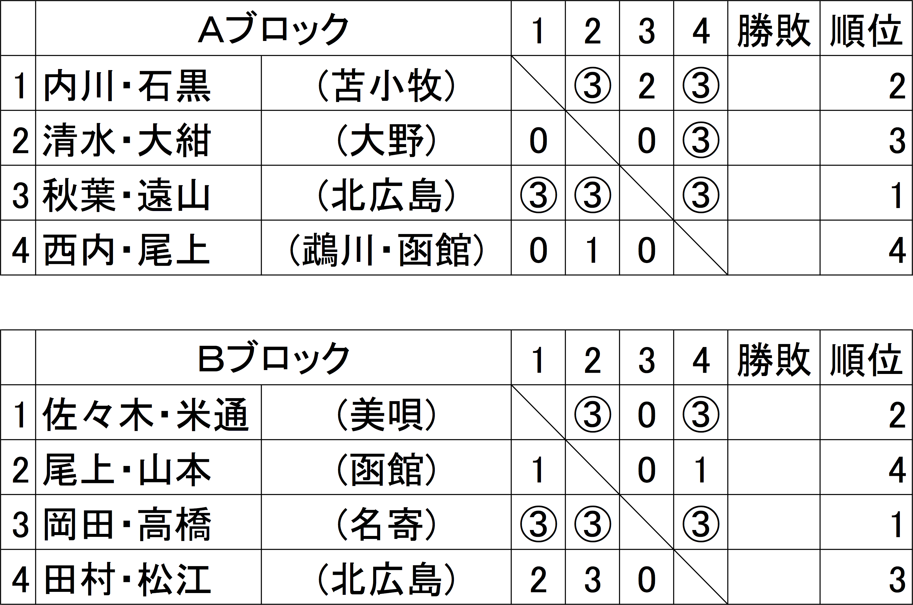 7 月13日に、函館市千代台公園庭球場で行われた第4回小学生ソフトテニス函館大会の結果です。
