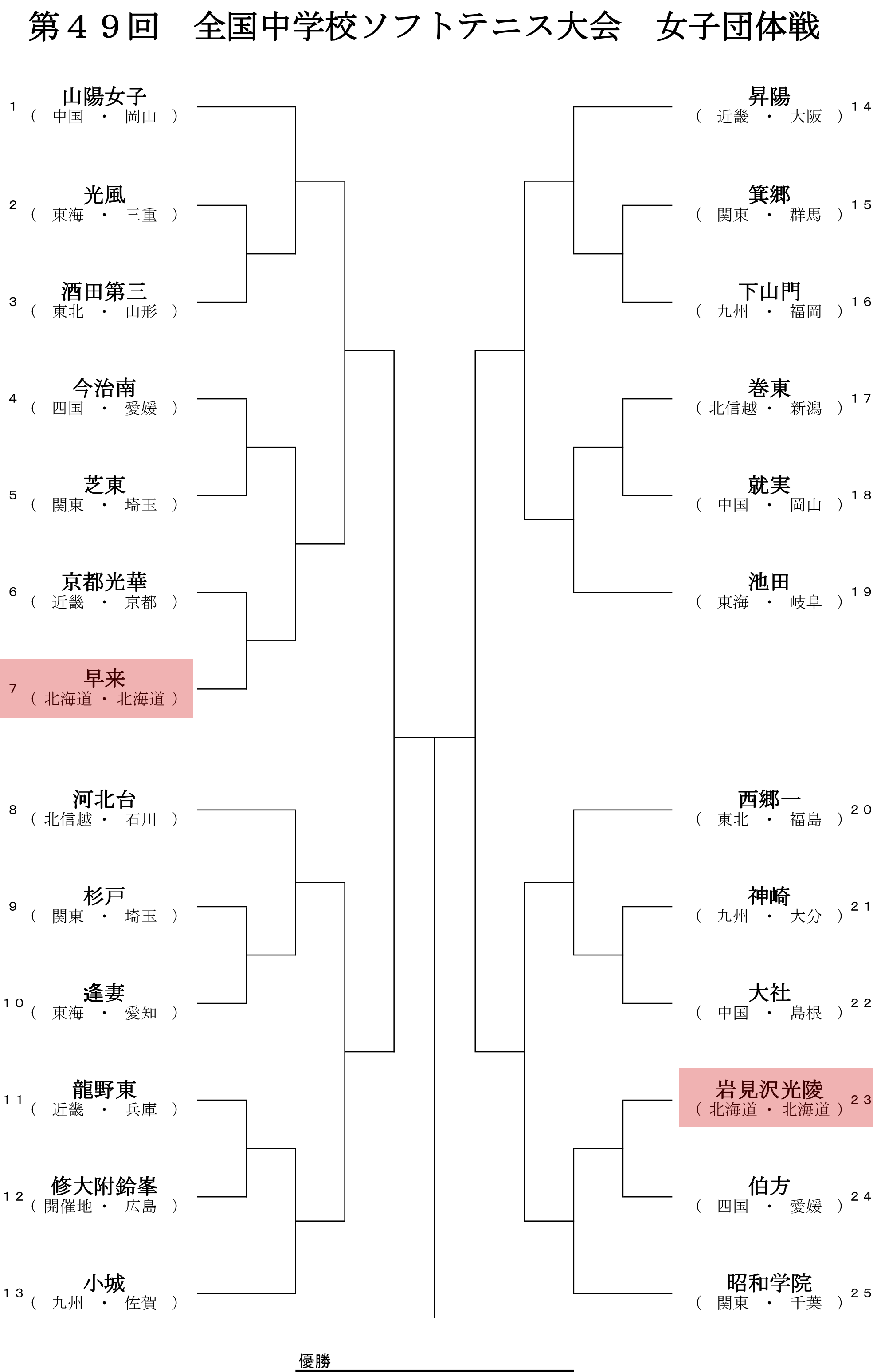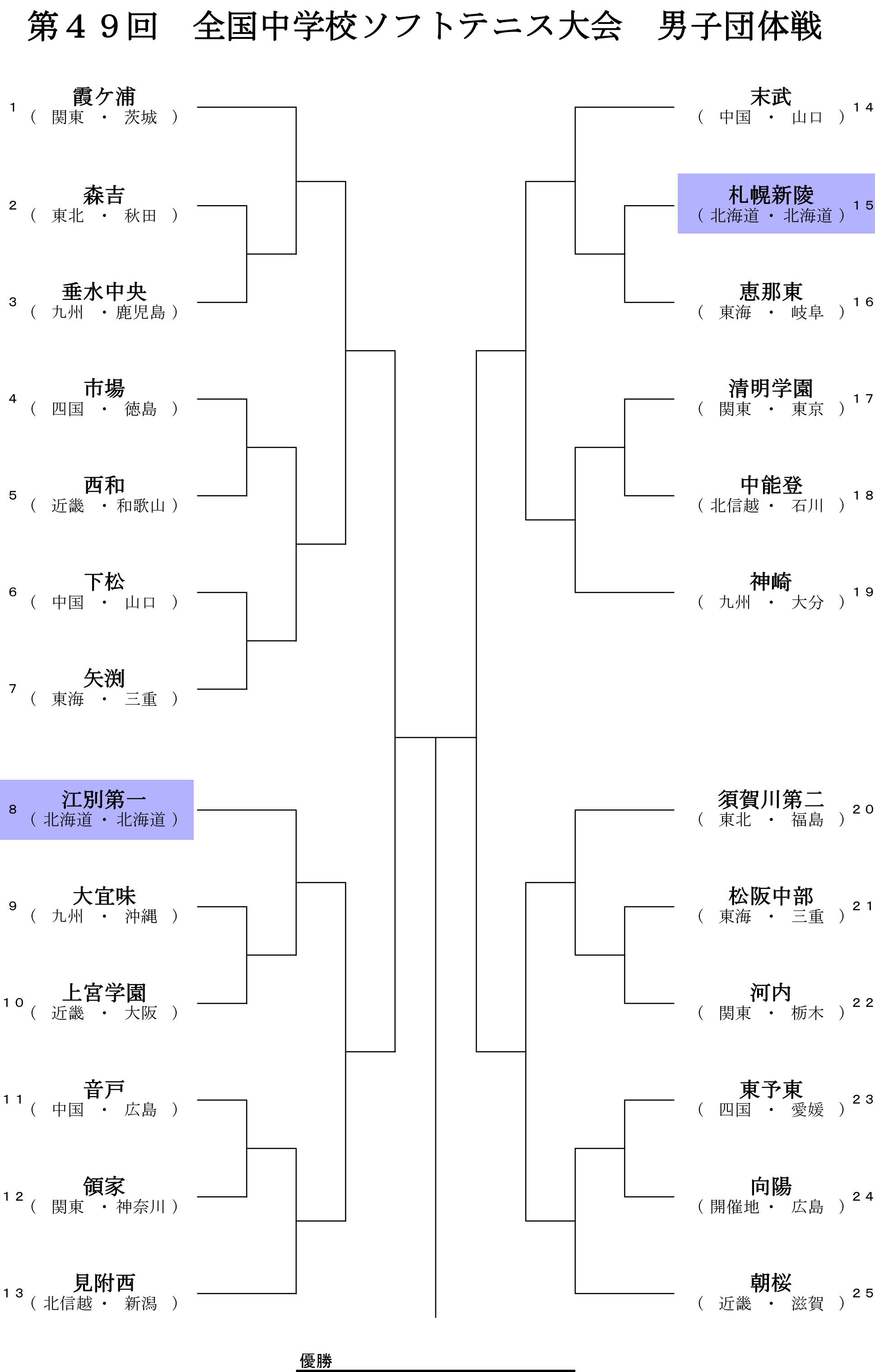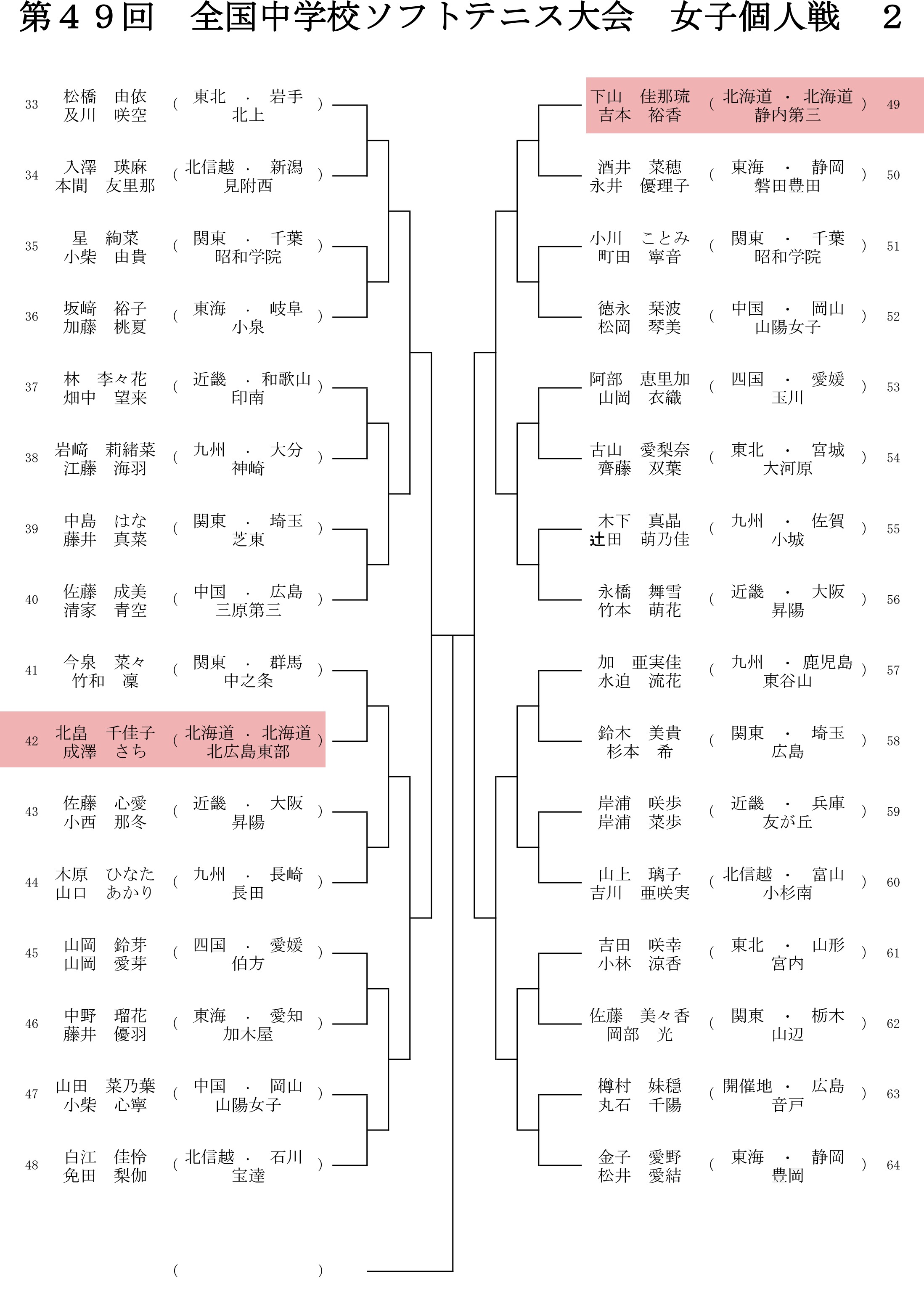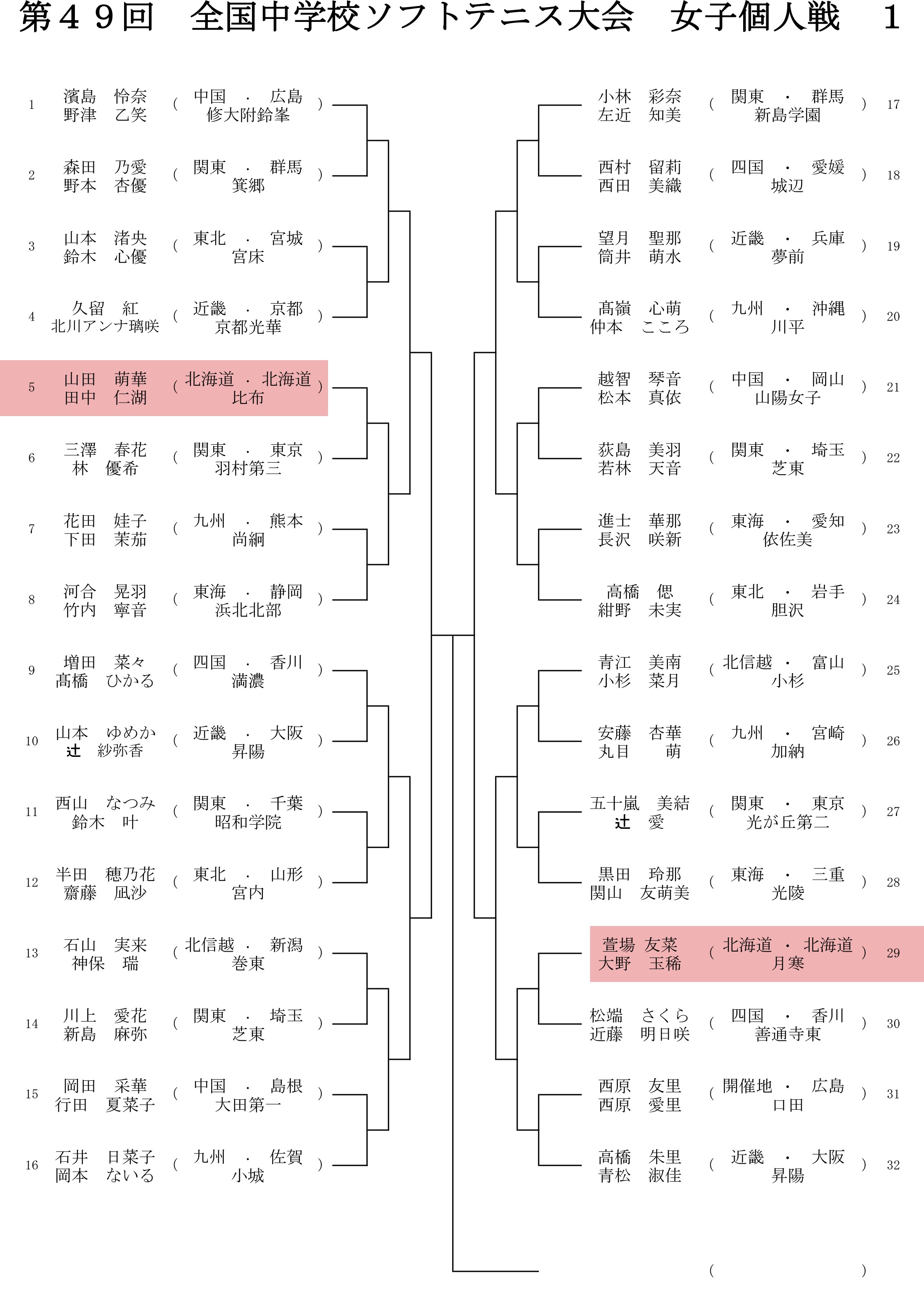 2018年8月20日 / 最終更新日時 : 2018年8月20日 管理人さん 中学生の大会 全中 – 第49回全国中学校ソフトテニス大会組み合わせ いよいよ明日から(試合は明後日から)全中です。 公式サイトの準備も整い、組み合わせもすでに発表されています。 ソフトテニスほっかいどうでも、北海道選手分をマーキングした組合せ表をアップしておきます。 Facebook で共有 (新しいウィンドウで開きます) Facebook X で共有 (新しいウィンドウで開きます) X コメントを残す コメントをキャンセルメールアドレスが公開されることはありません。 ※ が付いている欄は必須項目ですコメント ※ 名前 ※ メール ※ サイト 上に表示された文字を入力してください。 新しいコメントをメールで通知 新しい投稿をメールで受け取る Δ