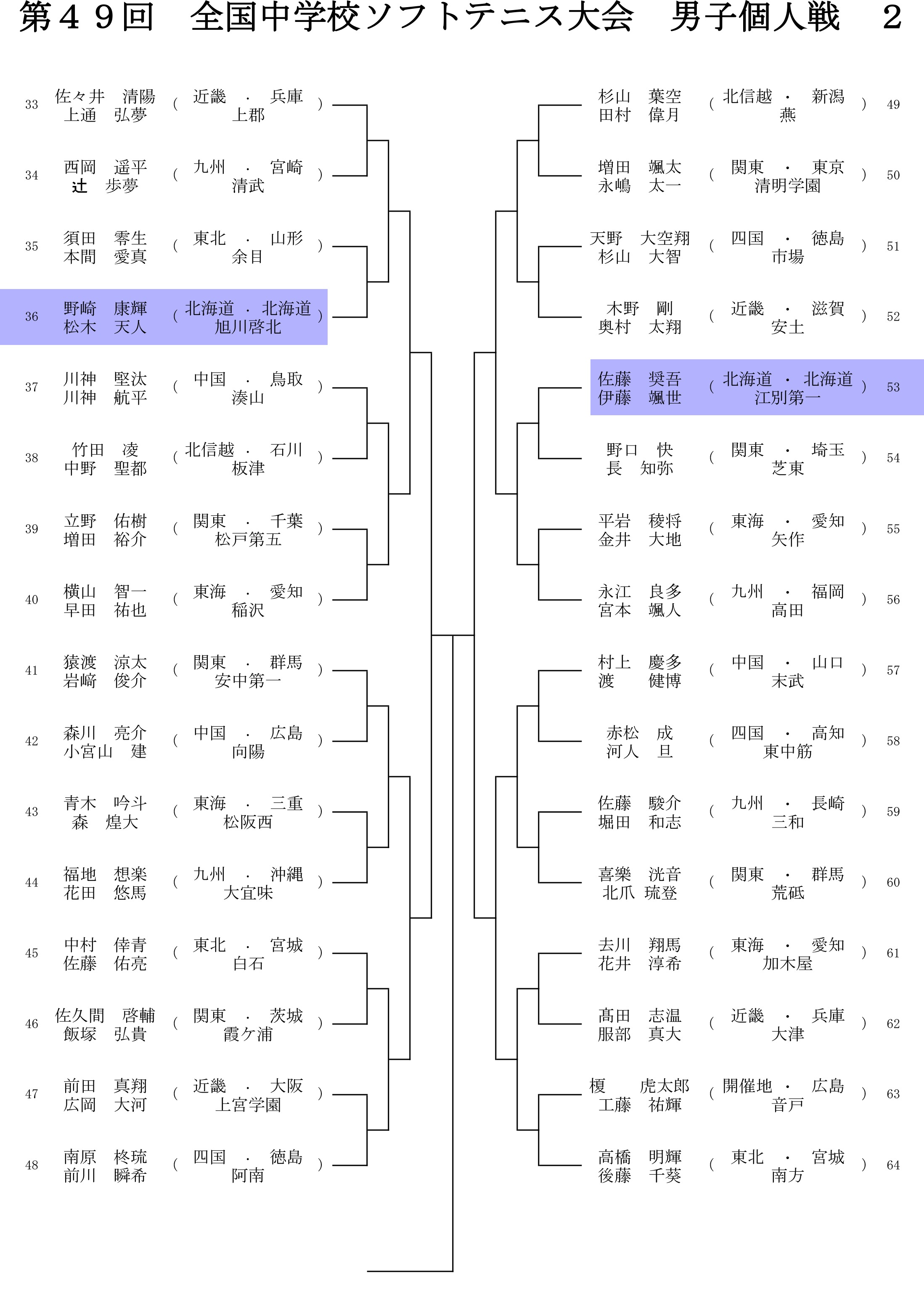 2018年8月20日 / 最終更新日時 : 2018年8月20日 管理人さん 中学生の大会 全中 – 第49回全国中学校ソフトテニス大会組み合わせ いよいよ明日から(試合は明後日から)全中です。 公式サイトの準備も整い、組み合わせもすでに発表されています。 ソフトテニスほっかいどうでも、北海道選手分をマーキングした組合せ表をアップしておきます。 Facebook で共有するにはクリックしてください (新しいウィンドウで開きます) Facebook クリックして X で共有 (新しいウィンドウで開きます) X コメントを残す コメントをキャンセルメールアドレスが公開されることはありません。 ※ が付いている欄は必須項目ですコメント ※ 名前 ※ メール ※ サイト 上に表示された文字を入力してください。 新しいコメントをメールで通知 新しい投稿をメールで受け取る Δ