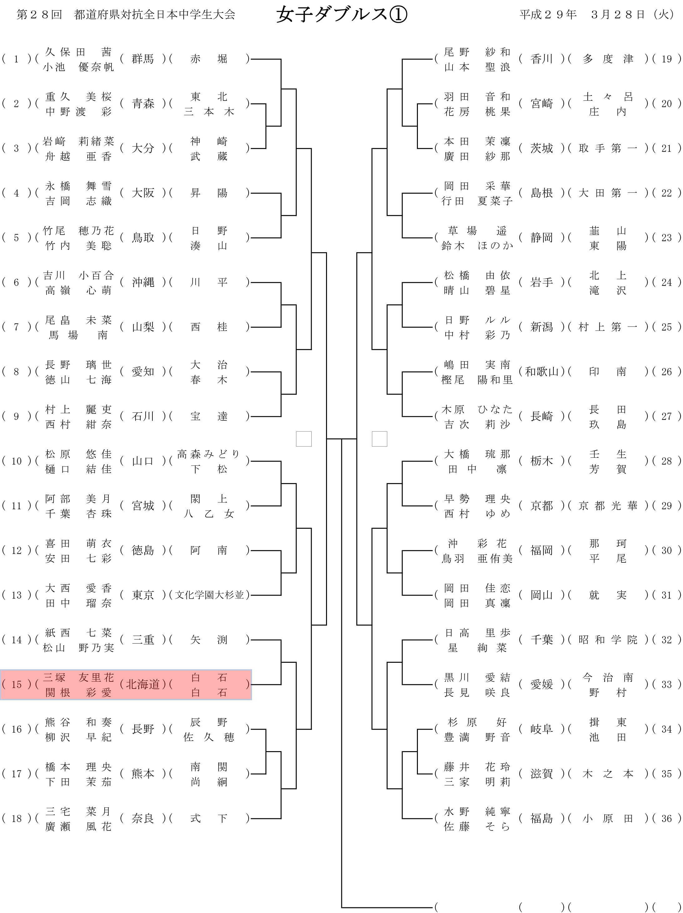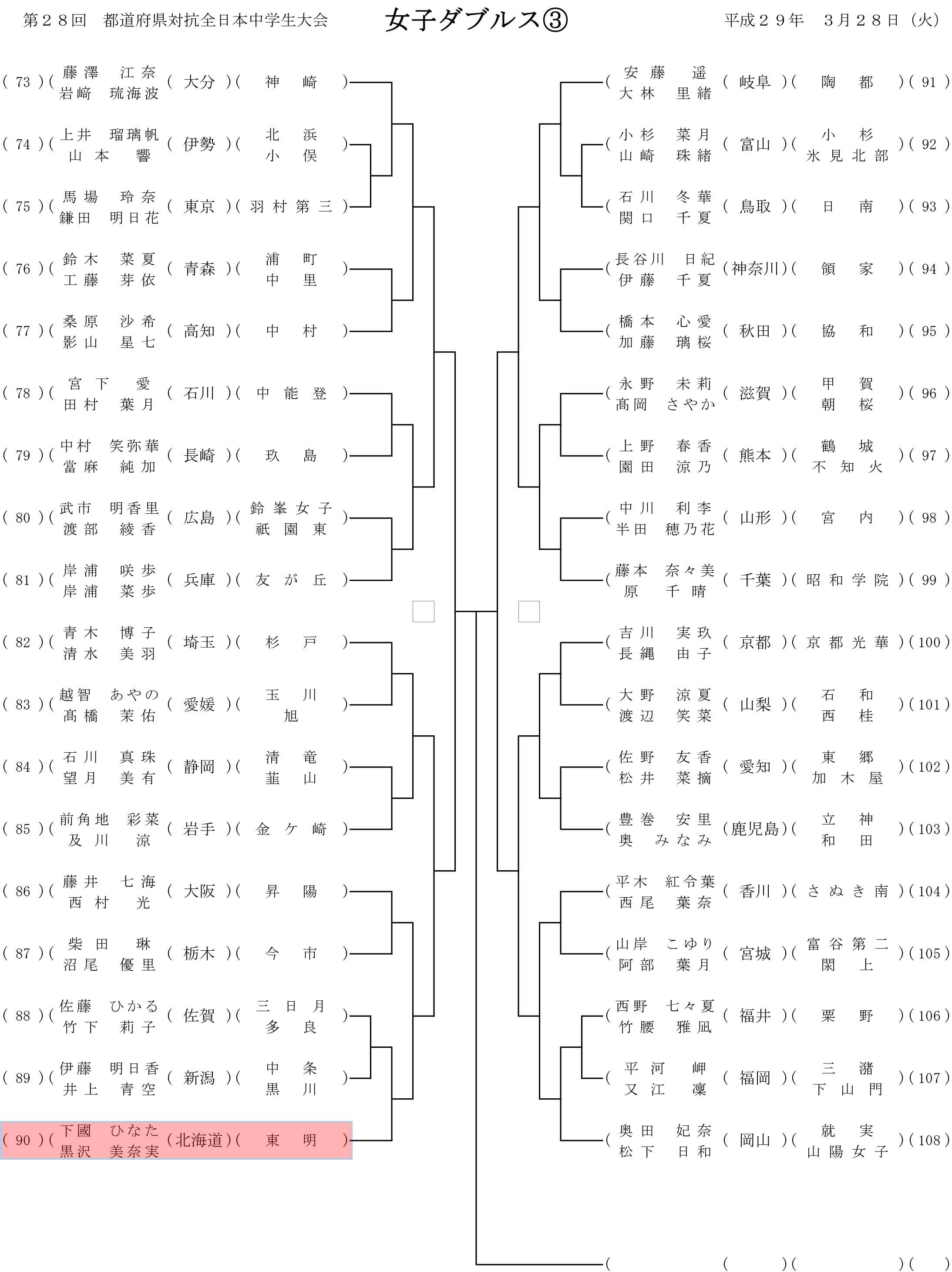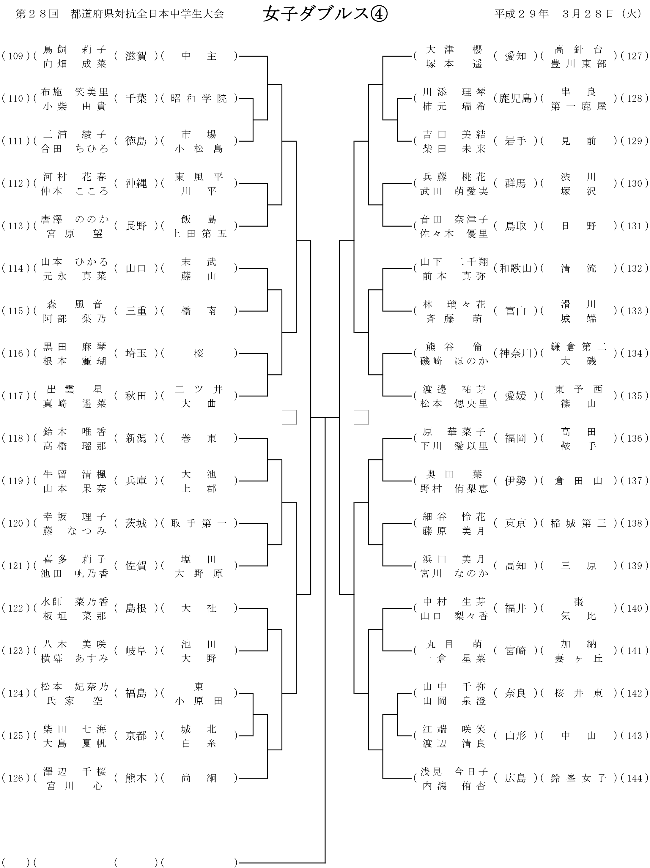 第28回都道府県対抗全日本中学生ソフトテニス大会 個人戦組み合わせ